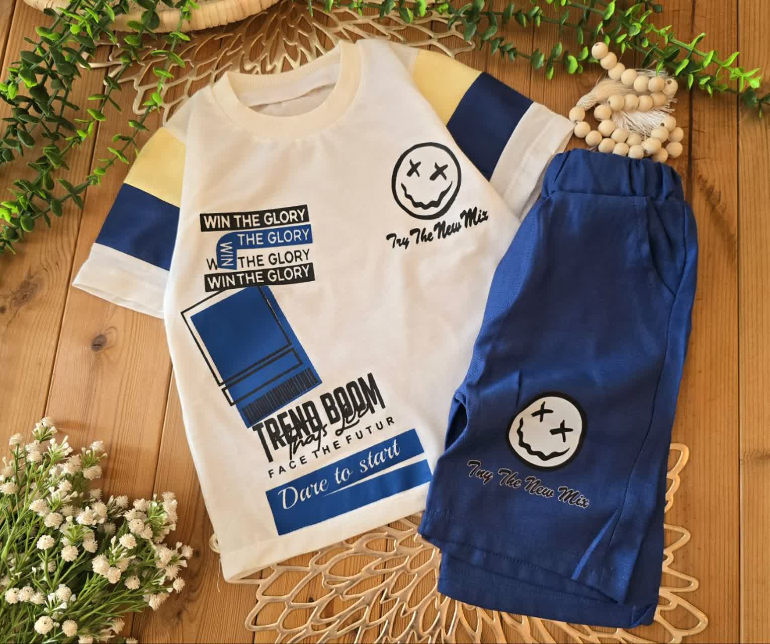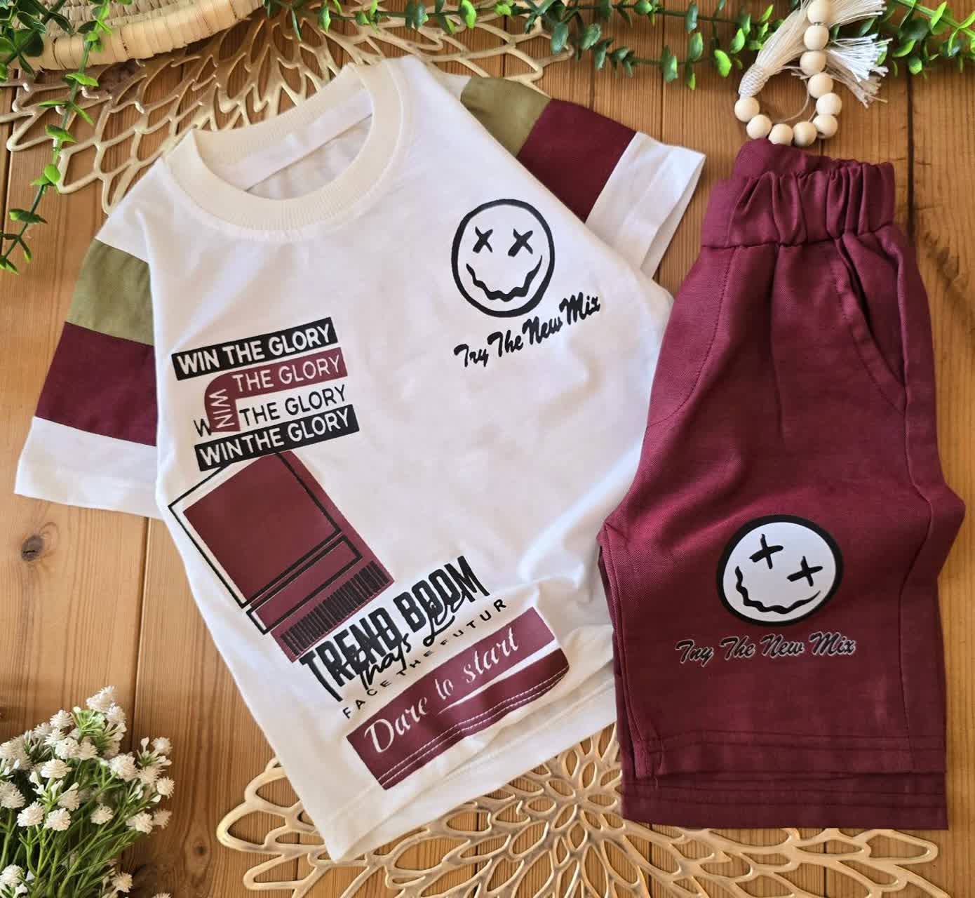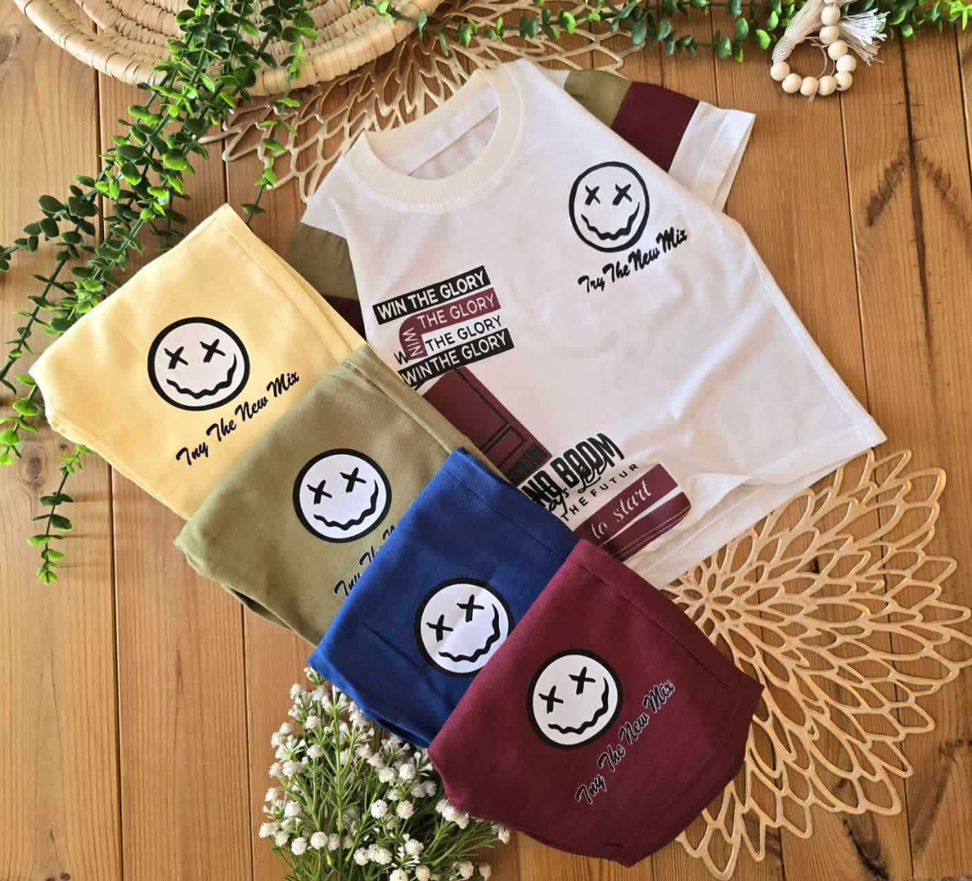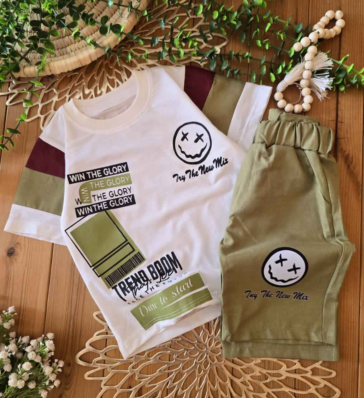 تیشرت با شلوارک استیکر چهار رنگ